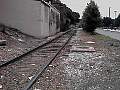 Now were looking southwest down the right-of-way off the end of the street trackage. I'm standing where the second track would have passed through. Obviously, the manhole and trees were placed after the track was removed. About two blocks from here, a walking and biking path parallels the track where the second track would have been. This will eventually be tied into the Northern Central Rail Trail which extends to Cockeysville, Maryland. The path terminates across from the old steam plant.