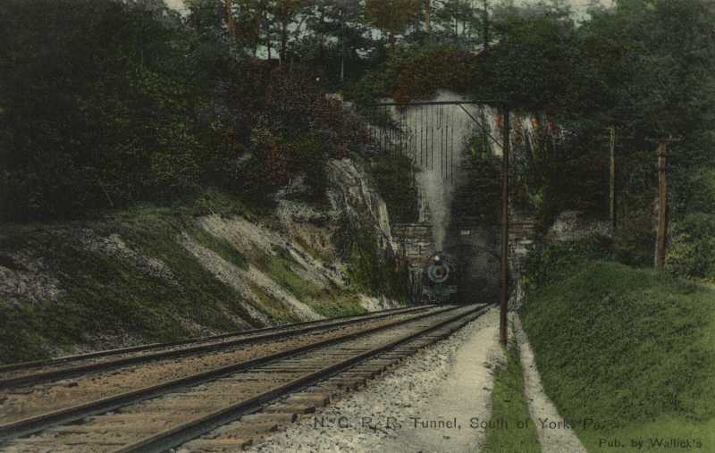 In order to build in Pennsylvania, a separate corporation was formed, the York and Maryland Line Railroad Company. Upon reaching New Freedom, the railroad followed the south branch of the Codorus Creek to access York. Just north of Gladfelters, the creek makes a long and tight oxbow curve around a granite wall, and the railroad engineers drilled through 300 feet of rock rather than twist the line around the wall. The tunnel was completed and opened to traffic in 1838, although the stone facework was not completed until 1840. Due to the abundance of wartime traffic on the line during the Civil War, the rail line was double tracked, and the tunnel was rebuilt to accomodate the second track in the 1860s. The Howard Tunnel is the oldest operating railroad tunnel in the United States, and the York County Heritage Rail Trail passes through the tunnel. Some information on the history of Howard Tunnel was found in the book, "The Story of the Northern Central Railway," a Greenburg publication by Robert L. Gunnarson, ISBN 0-89778-157-0.